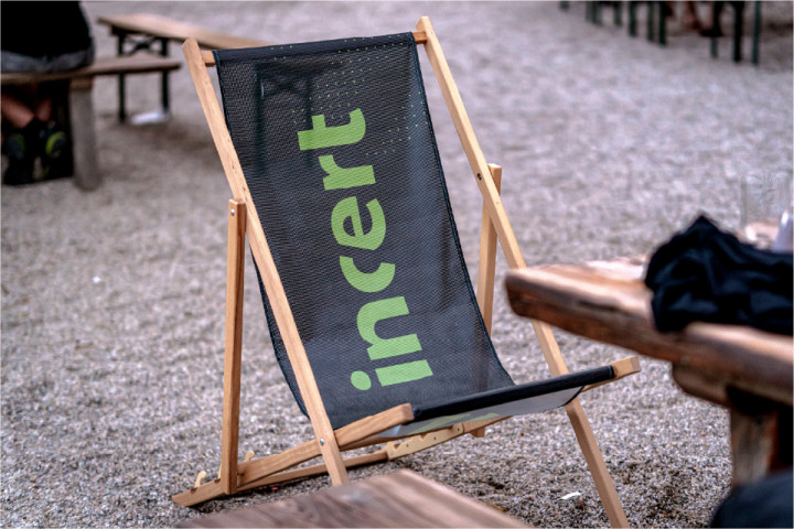 Bequemer Stoffbezug mit incert Branding für stilvolle Entspannung